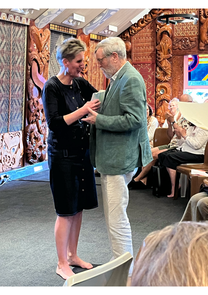 Erik and his work will be familiar to most people in this room. Made an Officer of the New-Zealand Order of Merit in 2002, he is the author of ten sole-authored books and four co-authored books, Erik is one of our country’s most prolific historians. Many of us likely had our early interest in the history of Aotearoa piqued by his illustrated history, co-authored with Judith Binney and Judith Bassett, The People and the Land: Te Tangata me te Whenua, a wonderfully illustrated introduction timed for the sesquicentenary in 1990. I have vivid memories of finding this book on the shelves at my high school library and becoming captivated by the stories told and the evocative images. He has won multiple awards and fellowships for his work. This includes a fellowship of the Royal Society of New Zealand, a James Cook Fellowship, and a Fulbright fellowship to the United States.